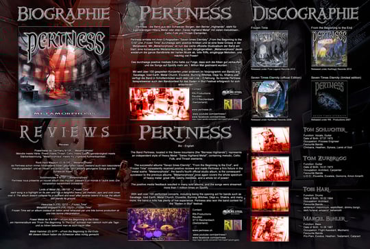 The successful albums "Seven times Eternity", "From the Beginning to the End", and "Frozen Time" consistently received positive reviews and made Pertness a firm fixture in the metal scene. "Metamorphosis", the band's fourth official studio album, is the consequent successor to the previous albums. "Metamorphosis" once again covers the whole spectrum of heavy metal: great riffs, catchy melodies, and a whole lot of power!